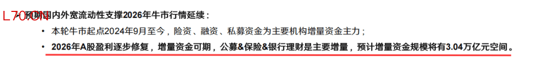 据券商研报预计,随着2026年A股盈利逐步修复,增量资金可期,公募、保险、银行理财是主要增量,预计增量资金规模将有超过3万亿元空间。
