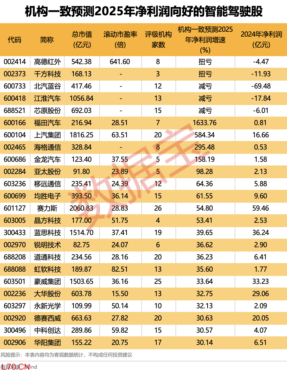 机构一致预测2025年净利润向好的智能驾驶股一览配资公司炒股指南
