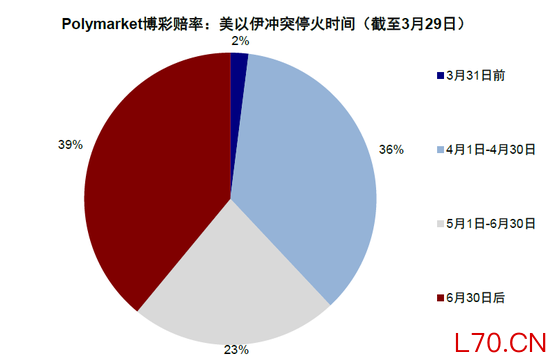 ► 首先,4月是当前市场预期的“分水岭”,目前市场预期约四成概率在4月底结束,不然就要持续到6月底以后。截至3月29日,Polymarket博彩赔率显示,市场预期3月底冲突结束的概率仅为2%,预期约40%的概率在4月底前结束,约40%的概率冲突要延续到6月底以后[2]。市场对伊朗局势“速战速决”的预期明显降温,更高概率的情形是冲突拖延至4月底,甚至拉锯更长时间。