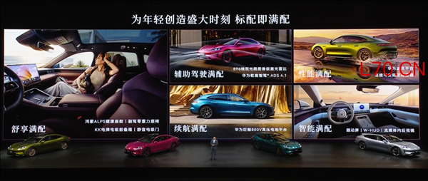 配置相当丰富,入门Max版提供车载冰箱、户外露营套件(后备箱220V电源、多功能车载随行灯、行李架、后排座椅一键放倒)、鸿蒙ALPS健康座舱、副驾零重力座椅、896线双光路图像级激光雷达、华为乾崑智驾ADS 4.1、连续可变阻尼减振器、车内随动屏、W-HUD流媒体内后视镜、静音电吸门、KK电弹电吸前备箱以及华为巨鲸800V高压电池平台,电池容量81kWh,CLTC续航712km,后轮驱动最大功率264千瓦(359马力),零百加速5.8秒。