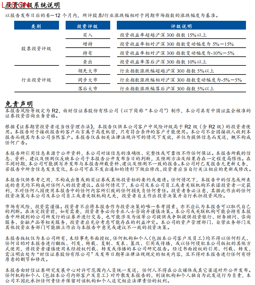 根据《证券期货投资者适当性管理办法》及《证券经营机构投资者适当性管理实施指引(试行)》的规定,通过新媒体形式制作的本订阅号推送信息仅面向财信证券研究服务客户中的风险承受能力为C2、C3、C4、C5的投资者,请勿对本订阅号推送信息进行任何形式的转发或者转载行为。若您并非财信证券研究服务客户中风险承受能力为C2、C3、C4、C5的投资者,请取消关注本订阅号,请勿订阅、接收或使用本订阅号中的任何推送信息。