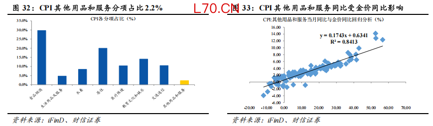 ①金价涨势延续但会放缓,翘尾因素下CPI其他用品和服务同比增速或将基本与2025年持平。从2022年开始至2025年,过去四年上海黄金现货均价的年度涨幅分别为5%、15%、24%、43%,导致CPI其他用品和服务同比对CPI的同比拉动率明显提升。世界黄金协会的预测显示,中性情景下,经济增长放缓、主要央行货币政策宽松以及持续的地缘政治风险等因素,2026年黄金价格有望迎来10%左右的涨幅。考虑到世界黄金协会使用的是年度涨幅,我们计算对CPI影响使用的是年度均价涨幅,换算后2026年黄金均价同比涨幅在翘尾因素带动下有望与2025年持平。