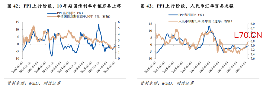 整体来看,物价上行期,收益率曲线或将陡峭化,人民币汇率有望走强。物价温和复苏与融资需求改善将对国债利率形成温和上行压力,尤其体现在长端收益率。不过,由于复苏强度有限,央行不会主动收紧流动性,利率上行空间亦受制约,预计10年期国债收益率中枢将小幅上移。同时,国内物价尤其是PPI转正,释放出经济内生动能改善的信号,有助于增强人民币资产的相对吸引力;加之“反内卷”政策提升出口产品附加值,降低汇率对单一价格因素的敏感度,人民币汇率将在基本面支撑下保持韧性,延续双向波动格局。