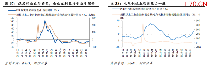 我们认为,由于多数中下游顺价能力皆有限,这轮PPI上行期企业盈利或向上游集中。本轮PPI上行主要由国际大宗商品价格反弹,需求端整体仍偏弱,终端消费与中下游制造业订单改善有限,导致价格传导不畅。在此背景下,如能源、矿产、部分化工原料等上游行业直接受益于产品涨价,成本结构中固定成本占比高、原材料自给率高的优势使其能将涨价转化为利润,毛利率快速提升;而中下游企业面临“成本上涨+终端提价难”的双重挤压,难以同步分享价格红利,甚至可能因原材料成本上升而侵蚀利润。此外,当前中下游产能利用率仍处低位、顺价能力有限,进一步限制了盈利改善的空间,因此本轮PPI上行期的盈利改善将大概率集中在议价能力强、直接受益涨价的上游行业,以及部分议价能力强的中下游行业(如高端装备、有品牌力的消费品)。