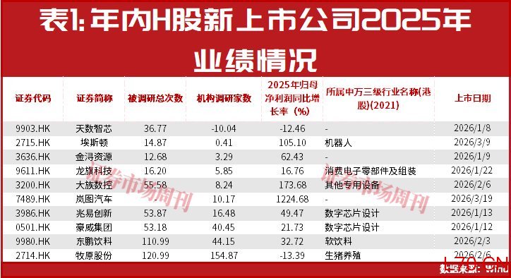 截至4月13日,据Wind统计,36家H股新上市公司中有10家公司发布2025年业绩情况(见表1),且整体业绩表现出色。