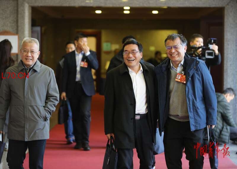 3月6日上午,北京会议中心,政协科技界别小组讨论会结束后,全国政协常委、中关村实验室主任吴建平(中)和其他委员一起离开会场。据介绍,作为中国互联网的主要开拓者之一,吴建平几乎参与了中国互联网从无到有的建设过程。中青报·中青网记者 陈剑/摄